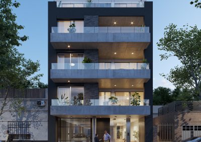 - 2 unidades por piso (tipos A y B), frente y contrafrente.